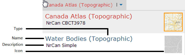 Each row in the basemap selector dropdown.