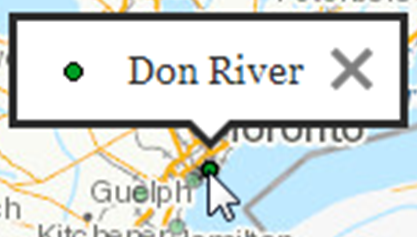 The popup that appears when a feature on the map is clicked.